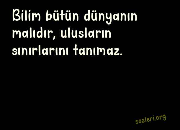 Bilim bütün dünyanın malıdır, ulusların sınırlarını tanımaz. ( Bilim )