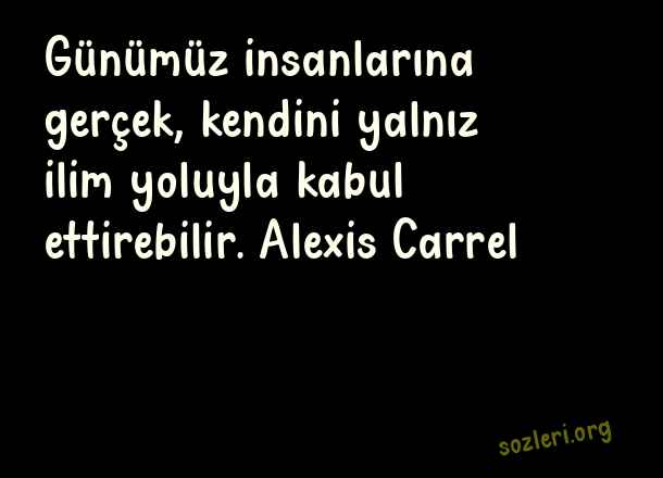 Günümüz insanlarına gerçek, kendini yalnız ilim yoluyla kabul ettirebilir. Alexis Carrel ( Bilim )
