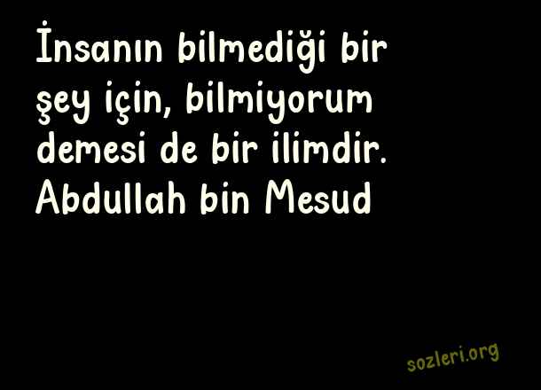 İnsanın bilmediği bir şey için, bilmiyorum demesi de bir ilimdir. Abdullah bin Mesud ( Bilim )