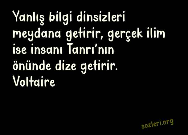 Yanlış bilgi dinsizleri meydana getirir, gerçek ilim ise insanı Tanrı’nın önünde dize getirir. Voltaire ( Bilim )