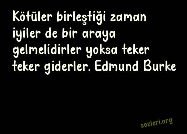 Kötüler birleştiği zaman iyiler de bir araya gelmelidirler yoksa teker teker giderler. Edmund Burke ( Birlik Beraberlik )