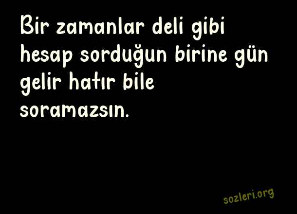 Bir zamanlar deli - Bitmiş Aşk Sözleri .. Bir zamanlar deli gibi hesap sorduğun birine gün gelir hatır bile soramazsın. ( Bitmiş Aşk )