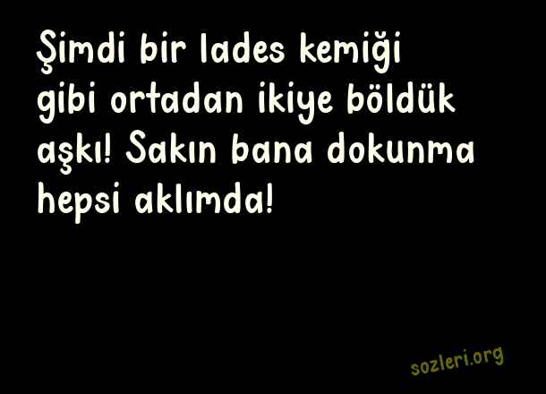 Şimdi bir lades kemiği gibi ortadan ikiye böldük aşkı! Sakın bana dokunma hepsi aklımda! ( Bitmiş Aşk )