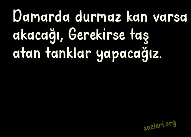Damarda durmaz kan varsa akacağı, Gerekirse taş atan tanklar yapacağız. ( Bozkurt )