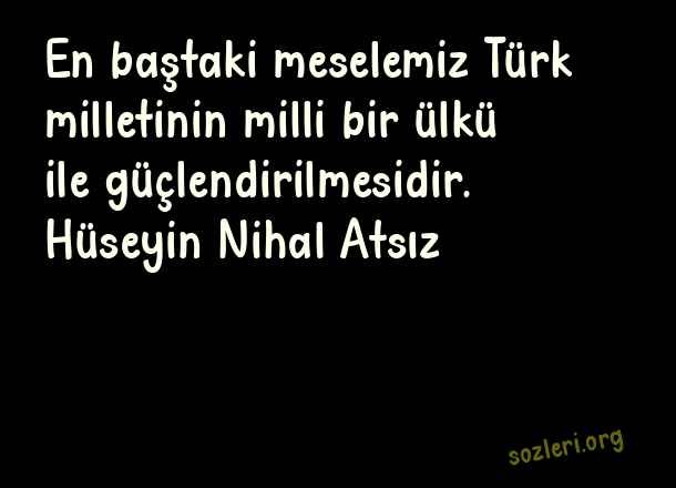 En baştaki meselemiz Türk milletinin milli bir ülkü ile güçlendirilmesidir. Hüseyin Nihal Atsız ( Bozkurt )
