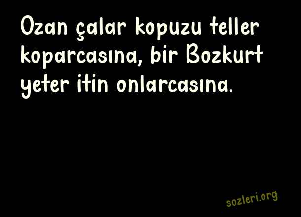 Ozan çalar kopuzu teller koparcasına, bir Bozkurt yeter itin onlarcasına. ( Bozkurt )