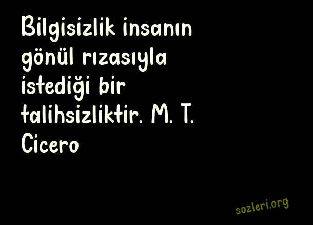Bilgisizlik insanın gönül rızasıyla istediği bir talihsizliktir. M. T. Cicero ( Cahillik )