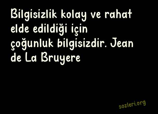 Bilgisizlik kolay ve rahat elde edildiği için çoğunluk bilgisizdir. Jean de La Bruyere ( Cahillik )