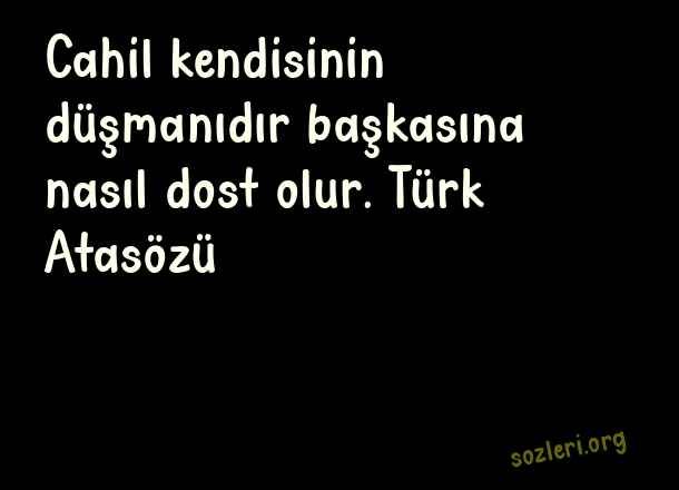 Cahil kendisinin düşmanıdır başkasına nasıl dost olur. Türk Atasözü ( Cahillik )