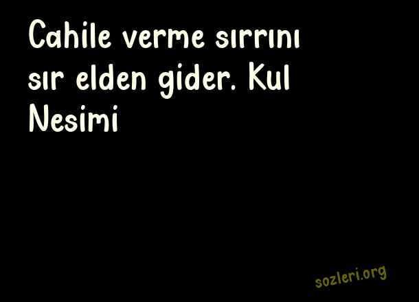 Cahile verme sırrını sır elden gider. Kul Nesimi ( Cahillik )