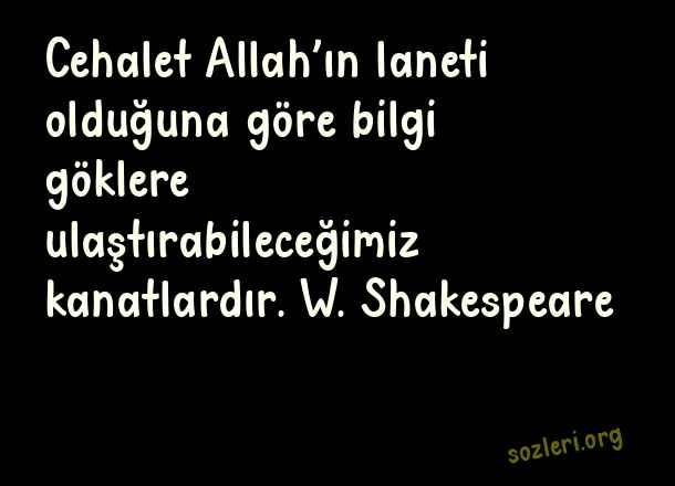 Cehalet Allah’ın laneti olduğuna göre bilgi göklere ulaştırabileceğimiz kanatlardır. W. Shakespeare ( Cahillik )