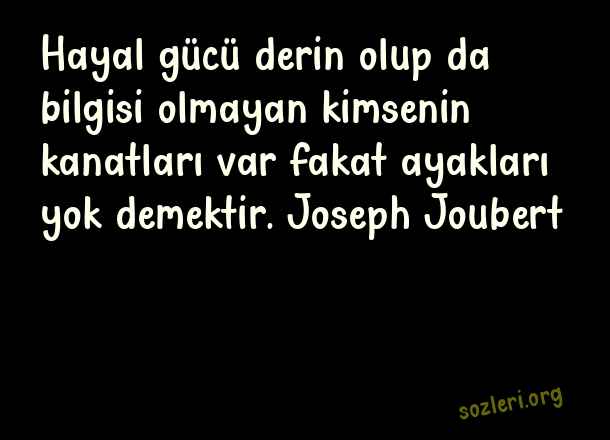 Hayal gücü derin olup da bilgisi olmayan kimsenin kanatları var fakat ayakları yok demektir. Joseph Joubert ( Cahillik )