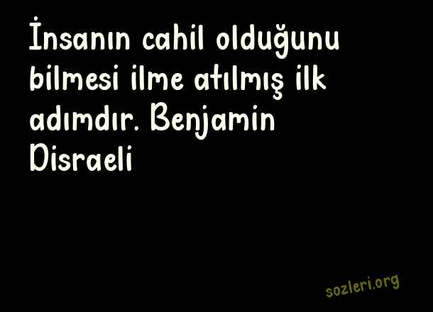 İnsanın cahil olduğunu bilmesi ilme atılmış ilk adımdır. Benjamin Disraeli ( Cahillik )