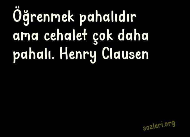 Öğrenmek pahalıdır ama cehalet çok daha pahalı. Henry Clausen ( Cahillik )