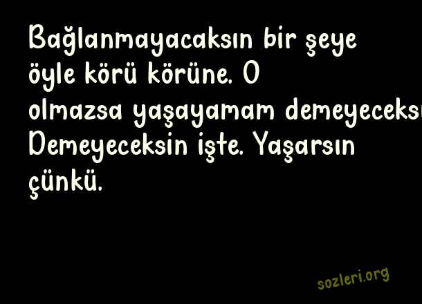 Bağlanmayacaksın bir şeye öyle körü körüne. O olmazsa yaşayamam demeyeceksin Demeyeceksin işte. Yaşarsın çünkü. ( Can Yücel )