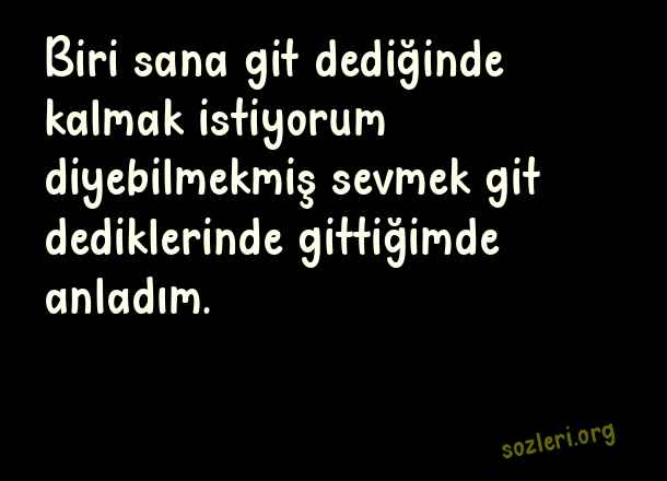 Biri sana git dediğinde kalmak istiyorum diyebilmekmiş sevmek git dediklerinde gittiğimde anladım. ( Can Yücel )