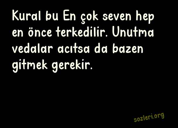 Kural bu En çok seven hep en önce terkedilir. Unutma vedalar acıtsa da bazen gitmek gerekir. ( Can Yücel )