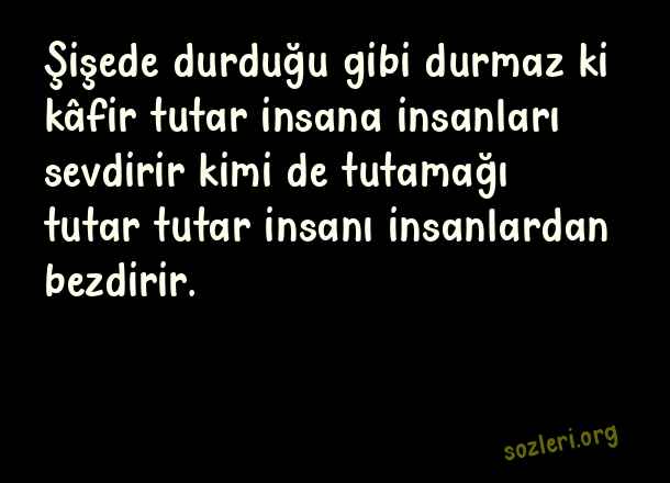 Şişede durduğu gibi durmaz ki kâfir tutar insana insanları sevdirir kimi de tutamağı tutar tutar insanı insanlardan bezdirir. ( Can Yücel )