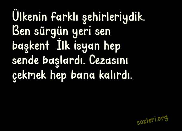 Ülkenin farklı şehirleriydik. Ben sürgün yeri sen başkent… İlk isyan hep sende başlardı. Cezasını çekmek hep bana kalırdı. ( Can Yücel )