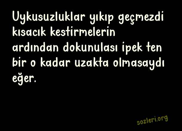 Uykusuzluklar yıkıp geçmezdi kısacık kestirmelerin ardından dokunulası ipek ten bir o kadar uzakta olmasaydı eğer. ( Can Yücel )