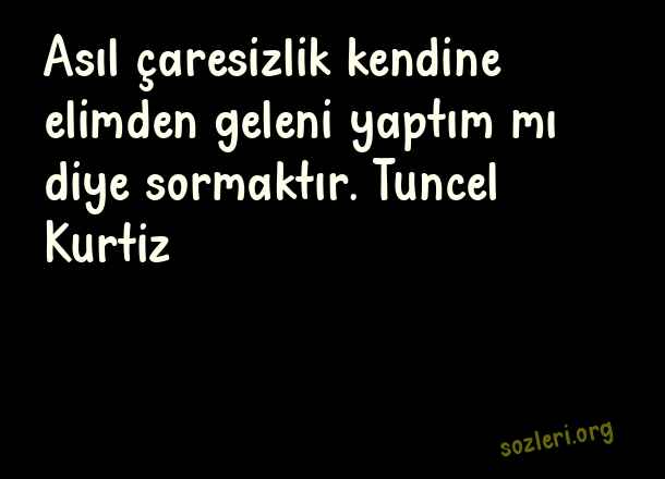 Asıl çaresizlik kendine elimden geleni yaptım mı diye sormaktır. Tuncel Kurtiz ( Çaresizlik )