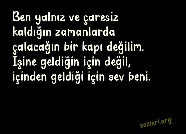 Ben yalnız ve çaresiz kaldığın zamanlarda çalacağın bir kapı değilim. İşine geldiğin için değil, içinden geldiği için sev beni. ( Çaresizlik )
