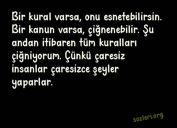 Bir kural varsa, onu esnetebilirsin. Bir kanun varsa, çiğnenebilir. Şu andan itibaren tüm kuralları çiğniyorum. Çünkü çaresiz insanlar çaresizce şeyler yaparlar. ( Çaresizlik )