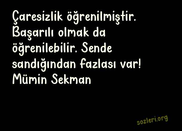 Çaresizlik öğrenilmiştir. Başarılı olmak da öğrenilebilir. Sende sandığından fazlası var! Mümin Sekman ( Çaresizlik )