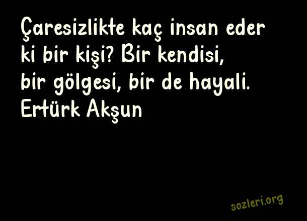 Çaresizlikte kaç insan eder ki bir kişi? Bir kendisi, bir gölgesi, bir de hayali. Ertürk Akşun ( Çaresizlik )