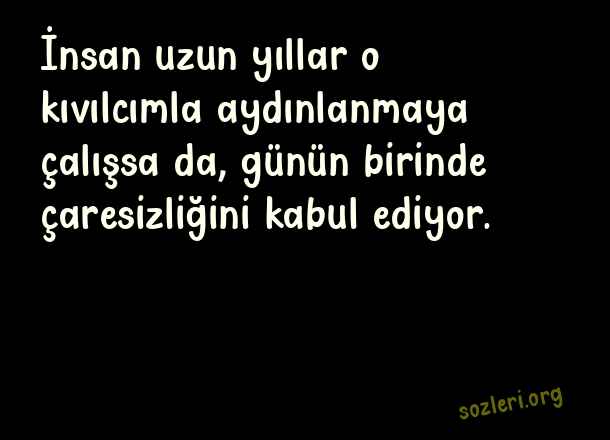 İnsan uzun yıllar o kıvılcımla aydınlanmaya çalışsa da, günün birinde çaresizliğini kabul ediyor. ( Çaresizlik )