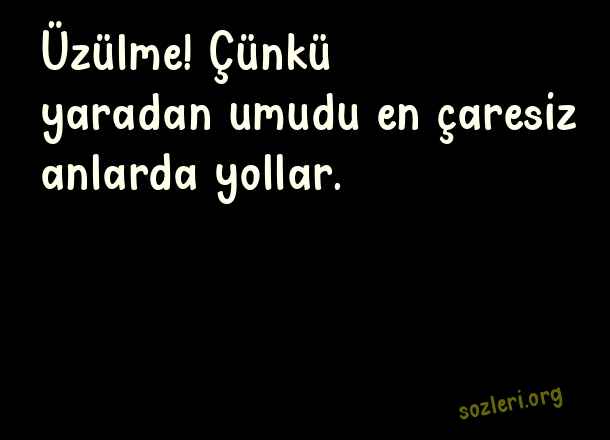 Üzülme! Çünkü yaradan umudu en çaresiz anlarda yollar. ( Çaresizlik )
