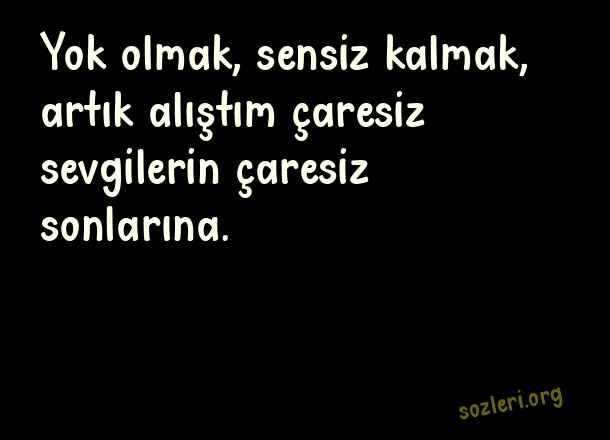 Yok olmak, sensiz - Çaresizlik Sözleri .. Yok olmak, sensiz kalmak, artık alıştım çaresiz sevgilerin çaresiz sonlarına. ( Çaresizlik )