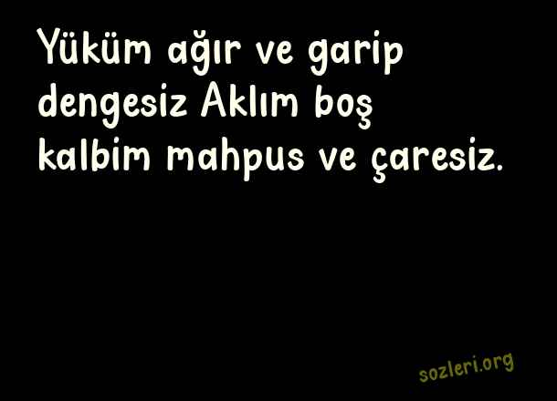 Yüküm ağır ve garip dengesiz Aklım boş kalbim mahpus ve çaresiz. ( Çaresizlik )