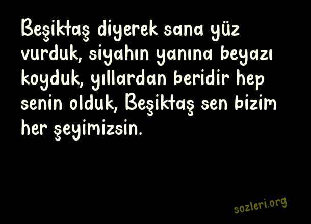 Beşiktaş diyerek sana yüz vurduk, siyahın yanına beyazı koyduk, yıllardan beridir hep senin olduk, Beşiktaş sen bizim her şeyimizsin. ( Çarşı )