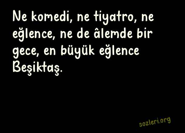Ne komedi, ne - Çarşı Sözleri .. Ne komedi, ne tiyatro, ne eğlence, ne de âlemde bir gece, en büyük eğlence Beşiktaş. ( Çarşı )