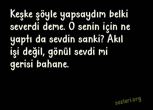 Keşke şöyle yapsaydım belki severdi deme. O senin için ne yaptı da sevdin sanki? Akıl işi değil, gönül sevdi mi gerisi bahane. ( Cemal Süreya )