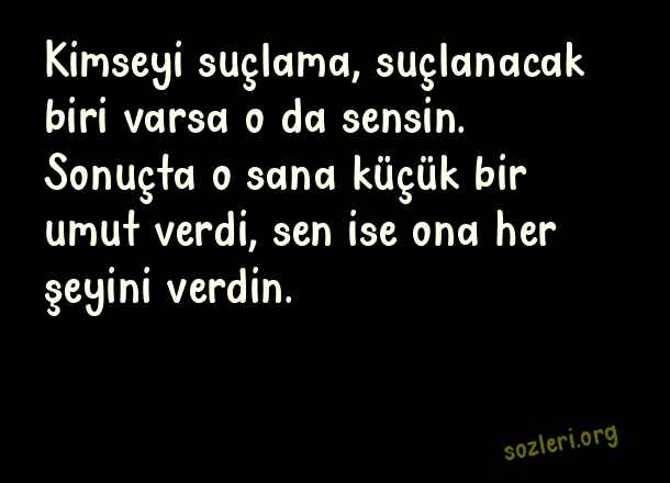 Kimseyi suçlama, suçlanacak biri varsa o da sensin. Sonuçta o sana küçük bir umut verdi, sen ise ona her şeyini verdin. ( Cemal Süreya )