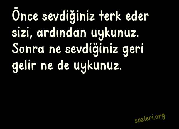 Önce sevdiğiniz terk eder sizi, ardından uykunuz. Sonra ne sevdiğiniz geri gelir ne de uykunuz. ( Cemal Süreya )