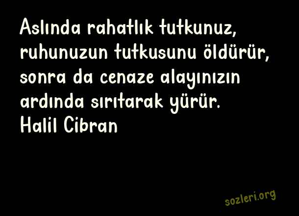 Aslında rahatlık tutkunuz, ruhunuzun tutkusunu öldürür, sonra da cenaze alayınızın ardında sırıtarak yürür. Halil Cibran ( Cenaze )