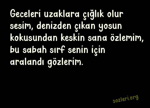 Geceleri uzaklara çığlık olur sesim, denizden çıkan yosun kokusundan keskin sana özlemim, bu sabah sırf senin için aralandı gözlerim. ( Çığlık )