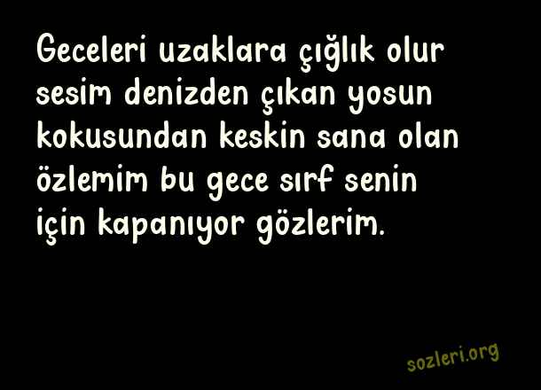 Geceleri uzaklara çığlık olur sesim denizden çıkan yosun kokusundan keskin sana olan özlemim bu gece sırf senin için kapanıyor gözlerim. ( Çığlık )