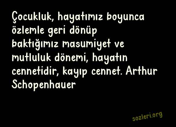 Çocukluk, hayatımız boyunca özlemle geri dönüp baktığımız masumiyet ve mutluluk dönemi, hayatın cennetidir, kayıp cennet. Arthur Schopenhauer ( Çocuğun Masumiyeti )