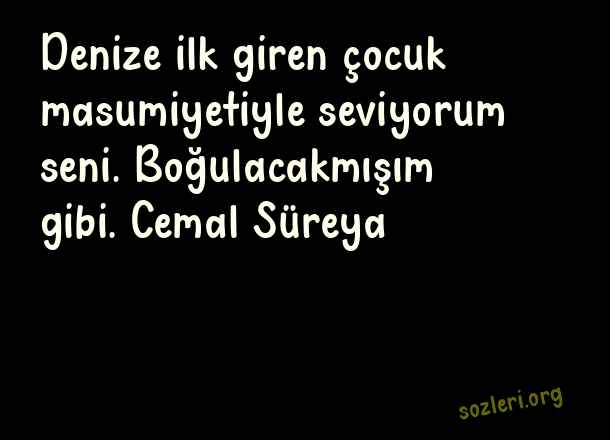 Denize ilk giren çocuk masumiyetiyle seviyorum seni. Boğulacakmışım gibi. Cemal Süreya ( Çocuğun Masumiyeti )