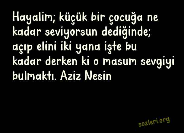 Hayalim; küçük bir çocuğa ne kadar seviyorsun dediğinde; açıp elini iki yana işte bu kadar derken ki o masum sevgiyi bulmaktı. Aziz Nesin ( Çocuğun Masumiyeti )