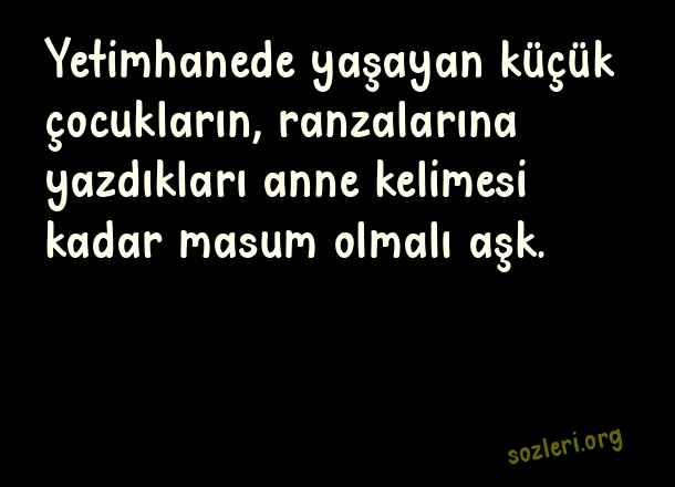 Yetimhanede yaşayan küçük çocukların, ranzalarına yazdıkları anne kelimesi kadar masum olmalı aşk. ( Çocuğun Masumiyeti )