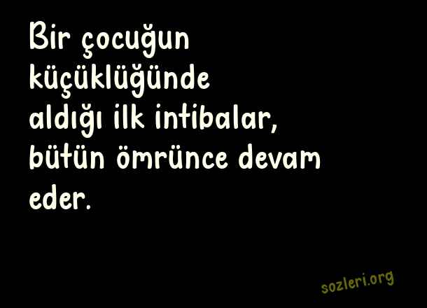 Bir çocuğun küçüklüğünde aldığı ilk intibalar, bütün ömrünce devam eder. ( Çocuklarla İlgili Güzel Sözler )