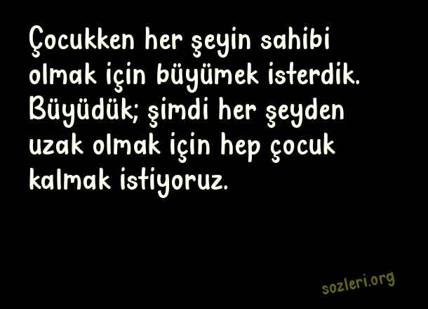 Çocukken her şeyin sahibi olmak için büyümek isterdik. Büyüdük; şimdi her şeyden uzak olmak için hep çocuk kalmak istiyoruz. ( Çocuklarla İlgili Güzel Sözler )