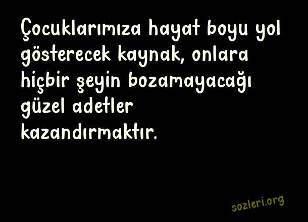 Çocuklarımıza hayat boyu yol gösterecek kaynak, onlara hiçbir şeyin bozamayacağı güzel adetler kazandırmaktır. ( Çocuklarla İlgili Güzel Sözler )