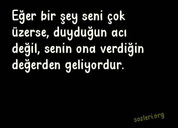 Eğer bir şey seni çok üzerse, duyduğun acı değil, senin ona verdiğin değerden geliyordur. ( Değerlisin )