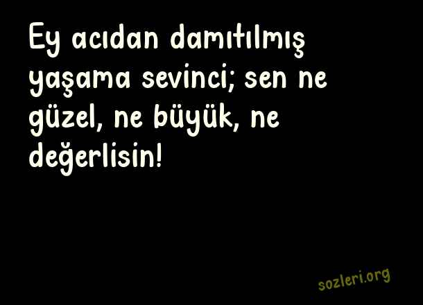 Ey acıdan damıtılmış - Değerlisin Sözleri .. Ey acıdan damıtılmış yaşama sevinci; sen ne güzel, ne büyük, ne değerlisin! ( Değerlisin )